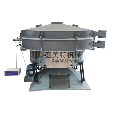 搖擺篩設(shè)備基本的回轉(zhuǎn)運(yùn)動(dòng)與人工篩分相類似,偏心率從25到40mm可調(diào);低速V型皮帶驅(qū)動(dòng)從120到360rpm可調(diào),每一種產(chǎn)品的停留時(shí)間可以通過搖擺篩的徑向角與切向角朝驅(qū)動(dòng)軸線方向進(jìn)行調(diào)整,因此建立水平與拋擲三維翻滾運(yùn)動(dòng),物料從中心到外緣在整個(gè)篩面上均勻分散,從而以螺旋運(yùn)動(dòng)往軸向傳播,細(xì)小顆粒從而完成了整個(gè)篩分過程,水平與垂直加速度隨著粒子的運(yùn)動(dòng)而增加,接近篩孔尺寸的顆粒隨之成功分離,較大顆粒被運(yùn)到出口處。出口處由-一個(gè)可調(diào)節(jié)的導(dǎo)向裝置控制流量,該導(dǎo)向裝置是控制物料停留時(shí)間的另一個(gè)因素,此次過程在每篩層之間重復(fù)進(jìn)行。